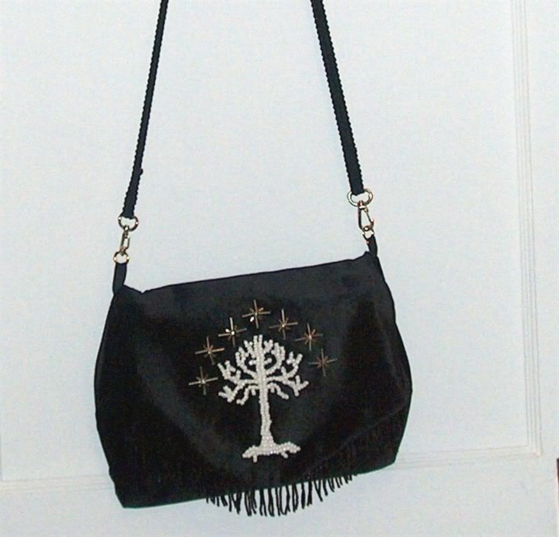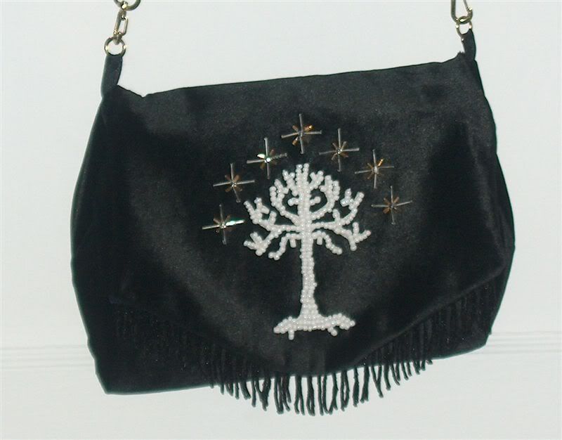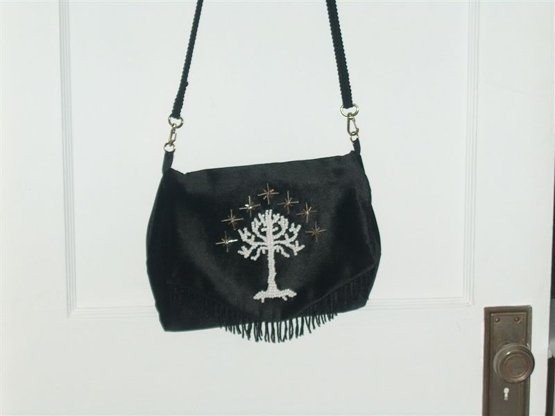 Well, I am HIGHLY impressed! That's gorgeous! Where did you get the pattern for the Tree? I started a White Tree in cross-stitch, ahem, some time ago, and it's been languishing unfinished. Did you make the purse as well?