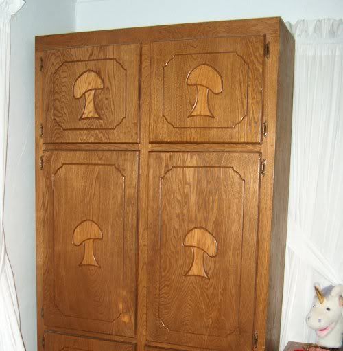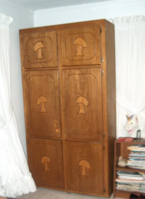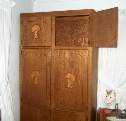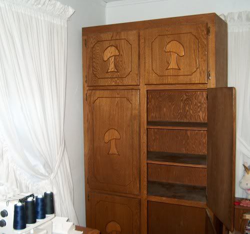 First of all, my hobbity cupboard, that the DH got me for my sewing room: