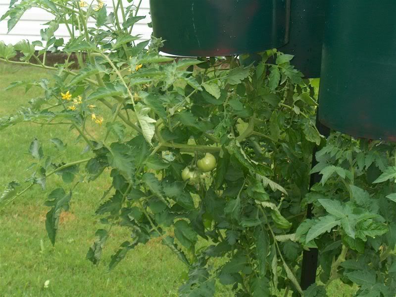 The first four pics are of my tomatoes, growing upside down, as I told you, and thriving!