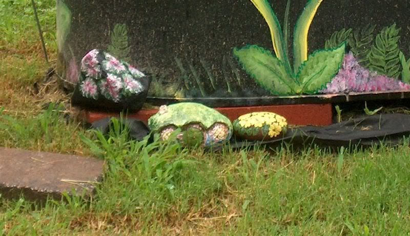 And here's a close up of some of my painted rocks. The one in the middle is a hobbit-hole, of course!!